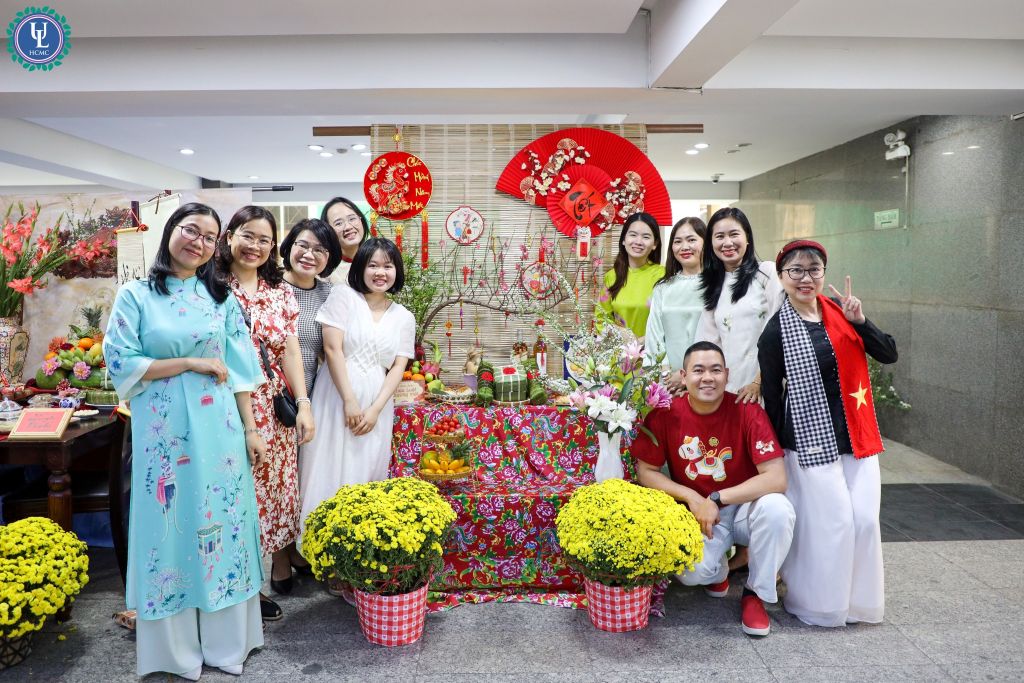 Ngay từ sáng sớm ngày 29/01, tại sảnh tầng trệt cơ sở Nguyễn Tất Thành, các thành viên của Tổ Công đoàn Khoa Luật Thương mại đã có mặt đầy đủ với tinh thần hứng khởi và sự chuẩn bị chu đáo. Trong trang phục truyền thống mang đậm sắc xuân, các thầy cô không chỉ là những giảng viên tâm huyết trên giảng đường mà còn là những “nghệ nhân” khéo léo trong nếp sống văn hóa cổ truyền.