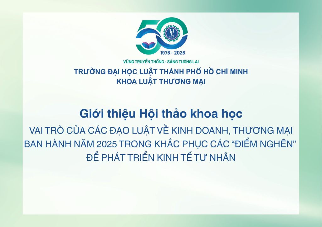 Với vai trò là cơ sở đào tạo và nghiên cứu pháp luật hàng đầu phía Nam, Khoa Luật Thương mại - Trường Đại học Luật TP. Hồ Chí Minh tổ chức hội thảo khoa học nhằm tạo diễn đàn cho các chuyên gia, nhà nghiên cứu, giảng viên, luật sư, và học viên trao đổi, thảo luận về các điểm mới trong hệ thống pháp luật năm 2025 liên quan đến kinh doanh thương mại, xoay quanh những môn học do Khoa Luật Thương Mại phụ trách. Mục tiêu là đánh giá tác động, đề xuất giải pháp hoàn thiện, và nâng cao nhận thức về các thay đổi pháp lý nhằm hỗ trợ thực thi hiệu quả, bảo vệ quyền lợi xã hội và thúc đẩy phát triển kinh tế.